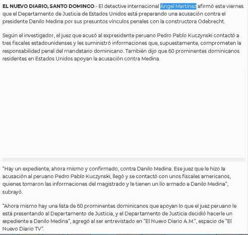 El mismo dizque «detective» había asegurado, para beneplácito de los opositores, que Leonel Fernandez estaba implicado en el caso Quirino y casi aseguro que el ex-presidiente estaría siendo extraditado. Personas que lograron llegar al expediente Quirino, completo, en USA, incluido el comunicador y muy bien informado Delis Herasme desmintieron esto con una copia del expediente en la mano… por ejemplo en el programa Con Punto y Coma del Sociólogo Juan Cruz Trifolio.